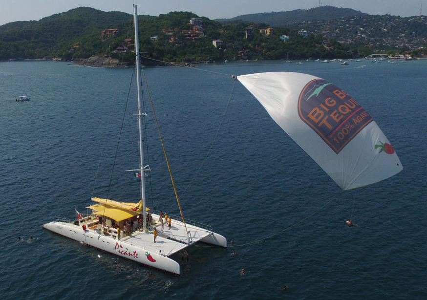 Daremos un agradable paseo por las aguas del Pacifico, mientras regresamos a la bahía y disfrutar del divertido “net-surfing”, o bien anclaremos frente a playa La Ropa para realizar los vuelos en el maravilloso e imponente spinnaker de 800 m2 (si el viento y las condiciones lo permiten).
